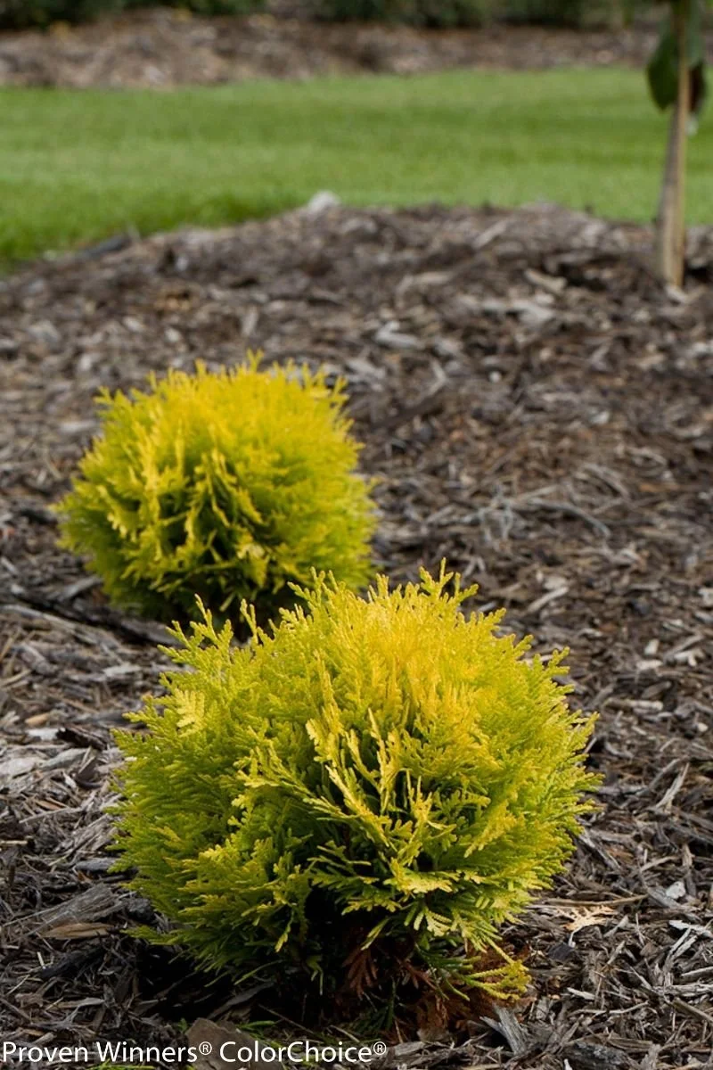 Attributes: Evergreen; maintains tight, rounded globe shape with no pruning required; native to North America; soft, bright yellow foliage; small size is easy to fit into urban gardens.