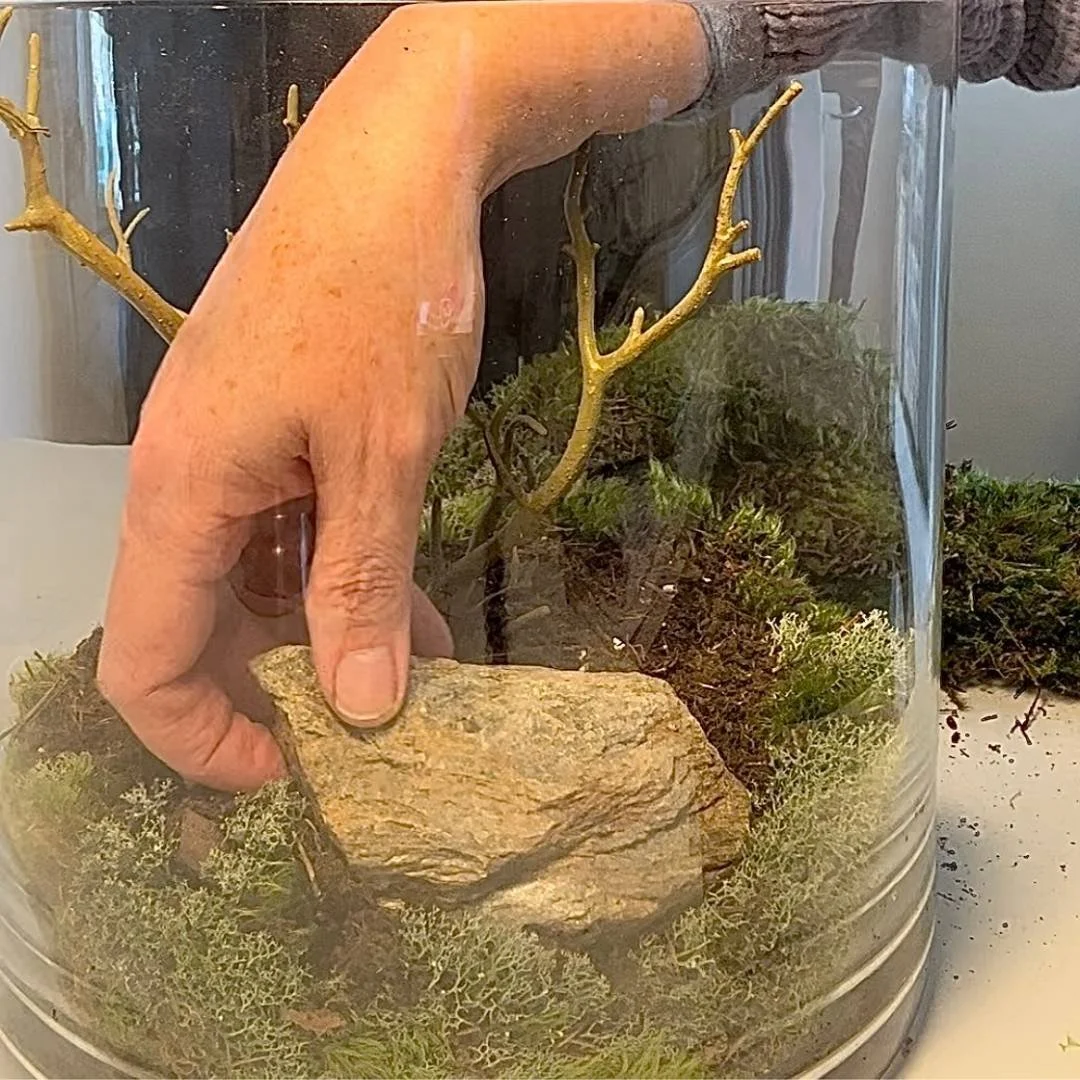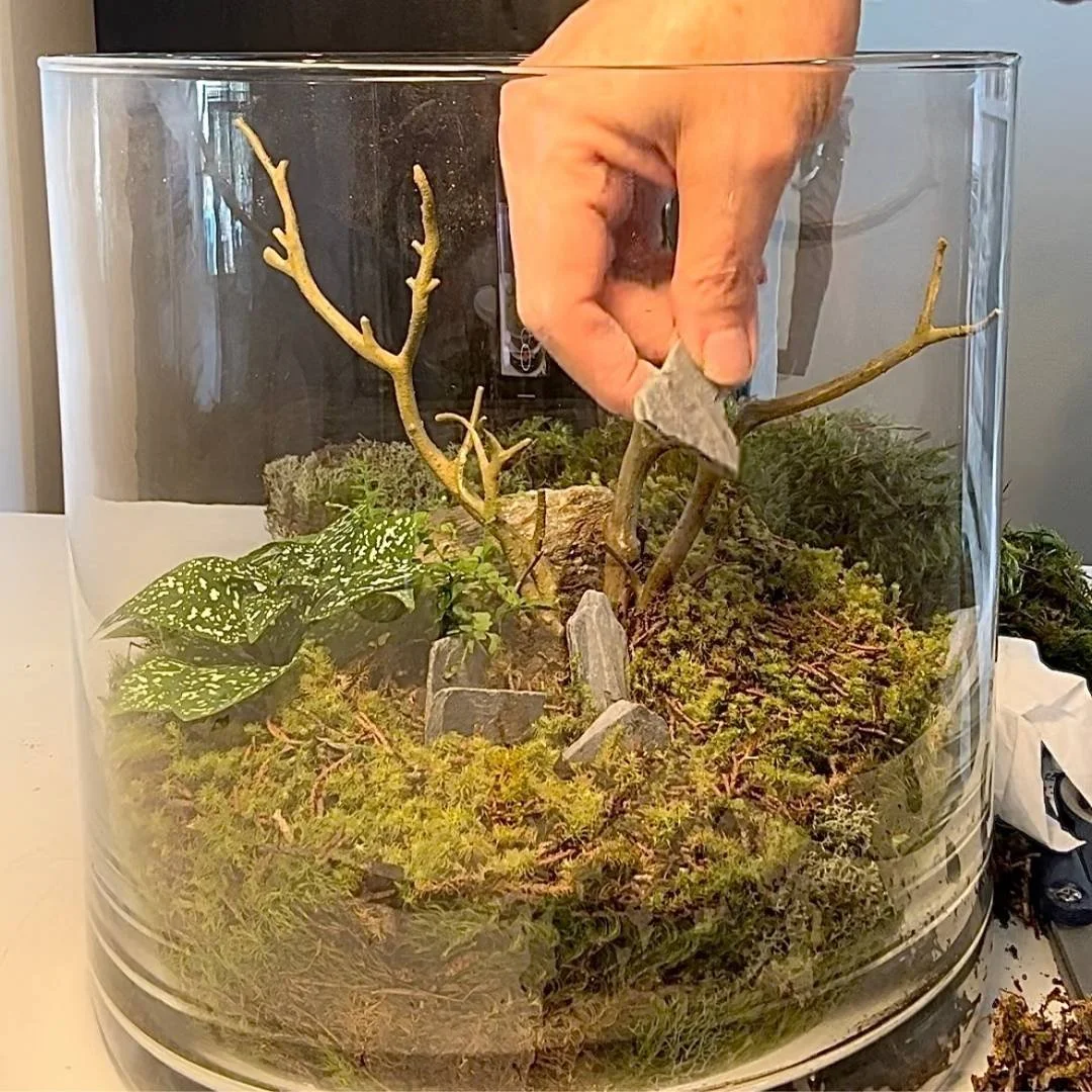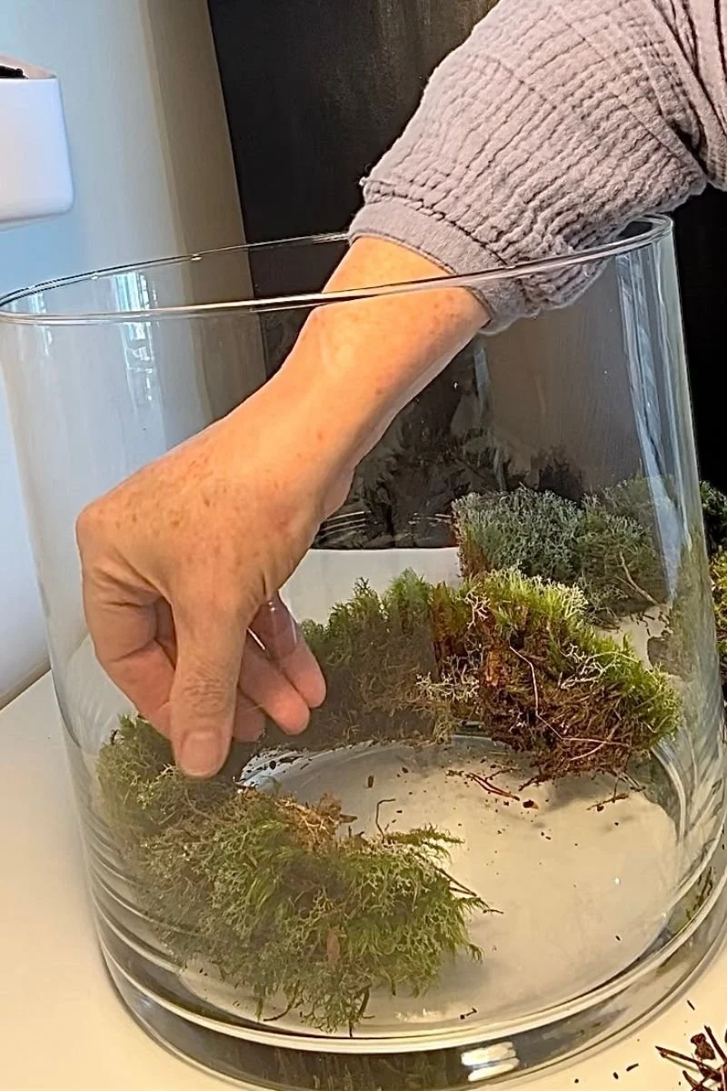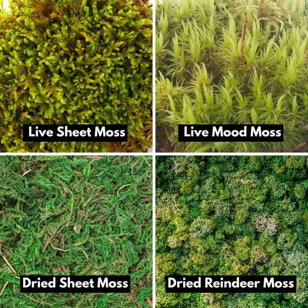 Live terrarium mosses, such as mood moss, cushion moss, and/or sheet moss (more on where to find live moss below)