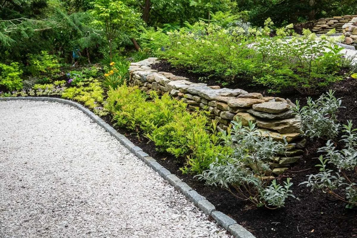 A row of Love Child® sweetspire softens the hard edges of a rock wall and creates visual interest. Image courtesy of Bailey Nurseries.